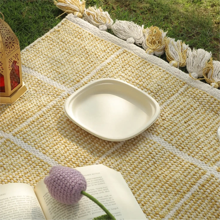 Our bagasse tableware is thoughtfully made from the fibrous pulp left after sugarcane is juiced — a renewable, agricultural byproduct that’s often discarded. Through a clean, chemical-free process involving heat and pressure, this natural material is transformed into durable, stylish eco-friendly disposable tableware.